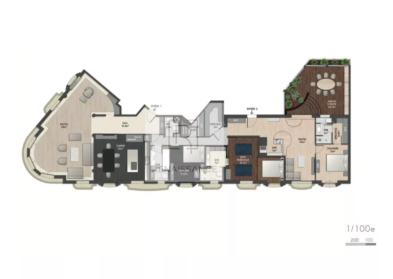 Le bien dispose également d'une buanderie, d'un dressing, d'un petit salon et d'un jardin d'hiver de 28 m², offrant des espaces supplémentaires pour un confort optimal.