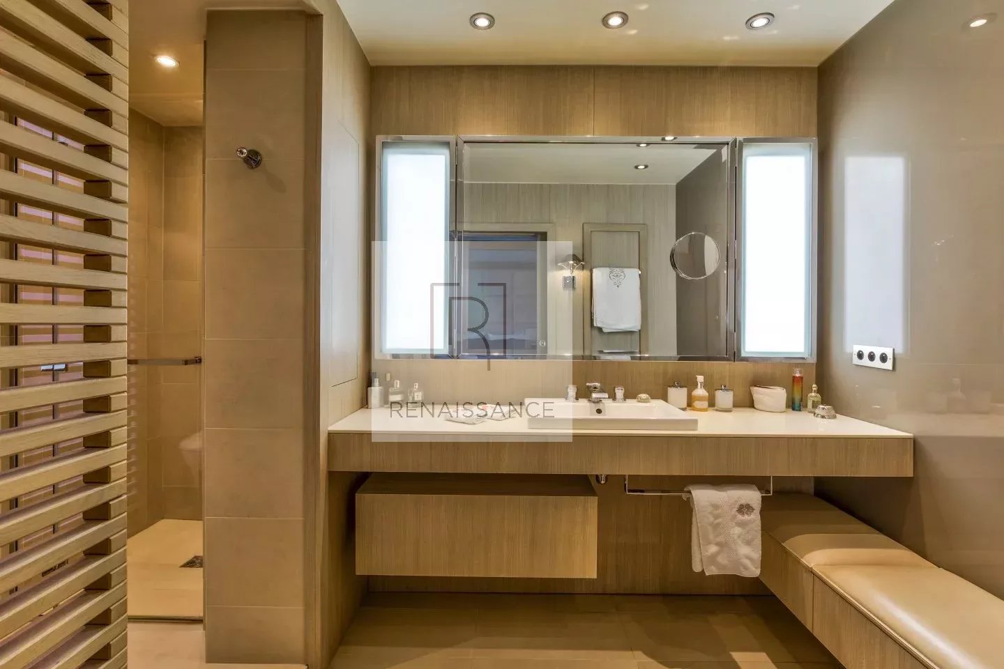 La partie nuit comprend trois chambres, chacune avec sa salle de bains privative, ainsi qu'une quatrième pièce modulable pouvant servir de chambre supplémentaire, bureau ou espace home cinéma selon vos besoins.