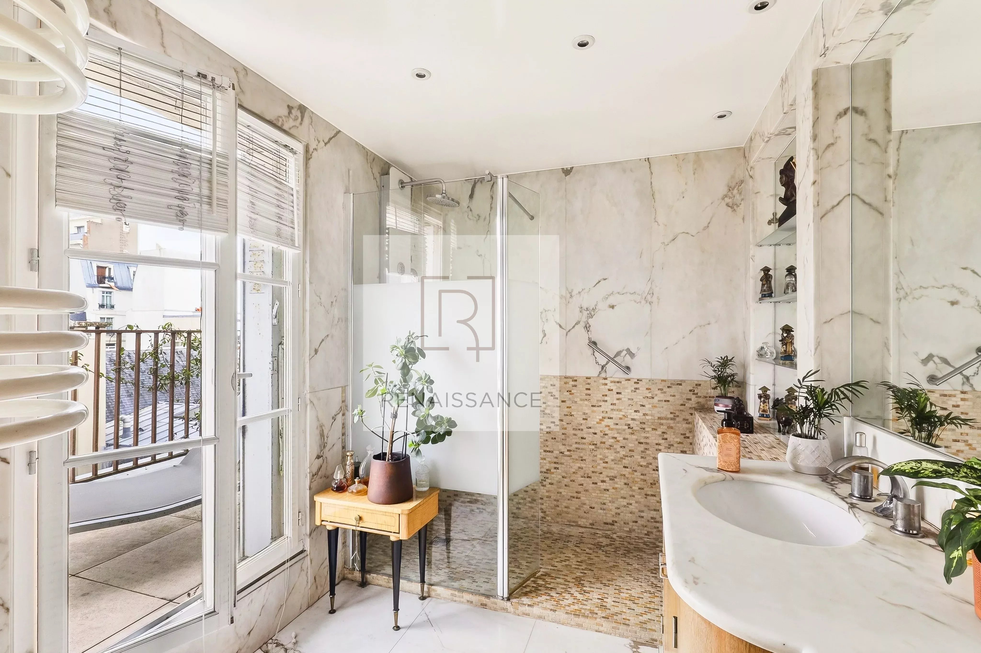 Rare 75003 Paris Le Marais nous vous proposons cet appartement en Duplex d'une surface de 156.23m2 loi Carrez, situé au 4ème étage avec ascenseur et bénéficiant de deux grands balcons et un PARKING.