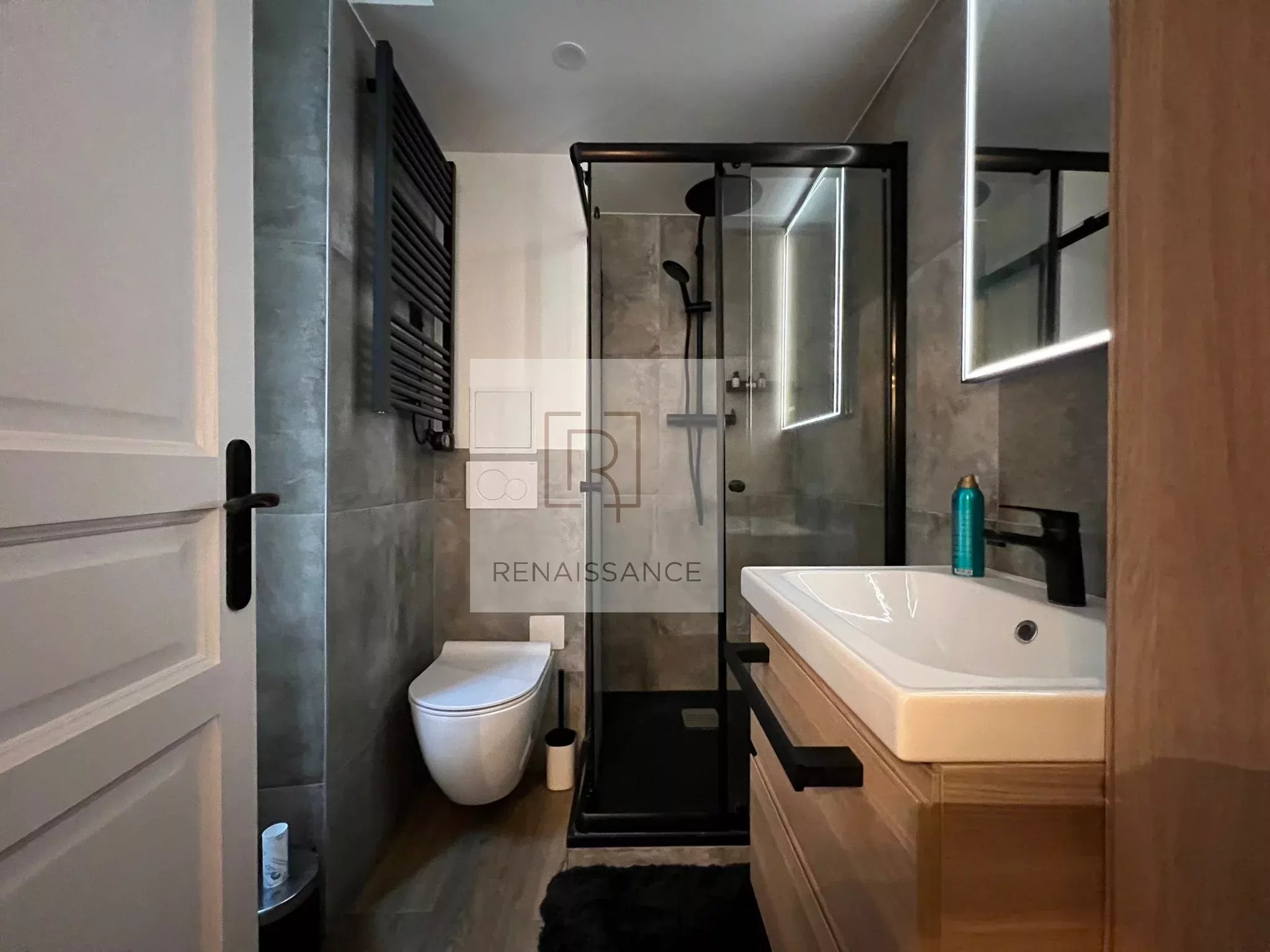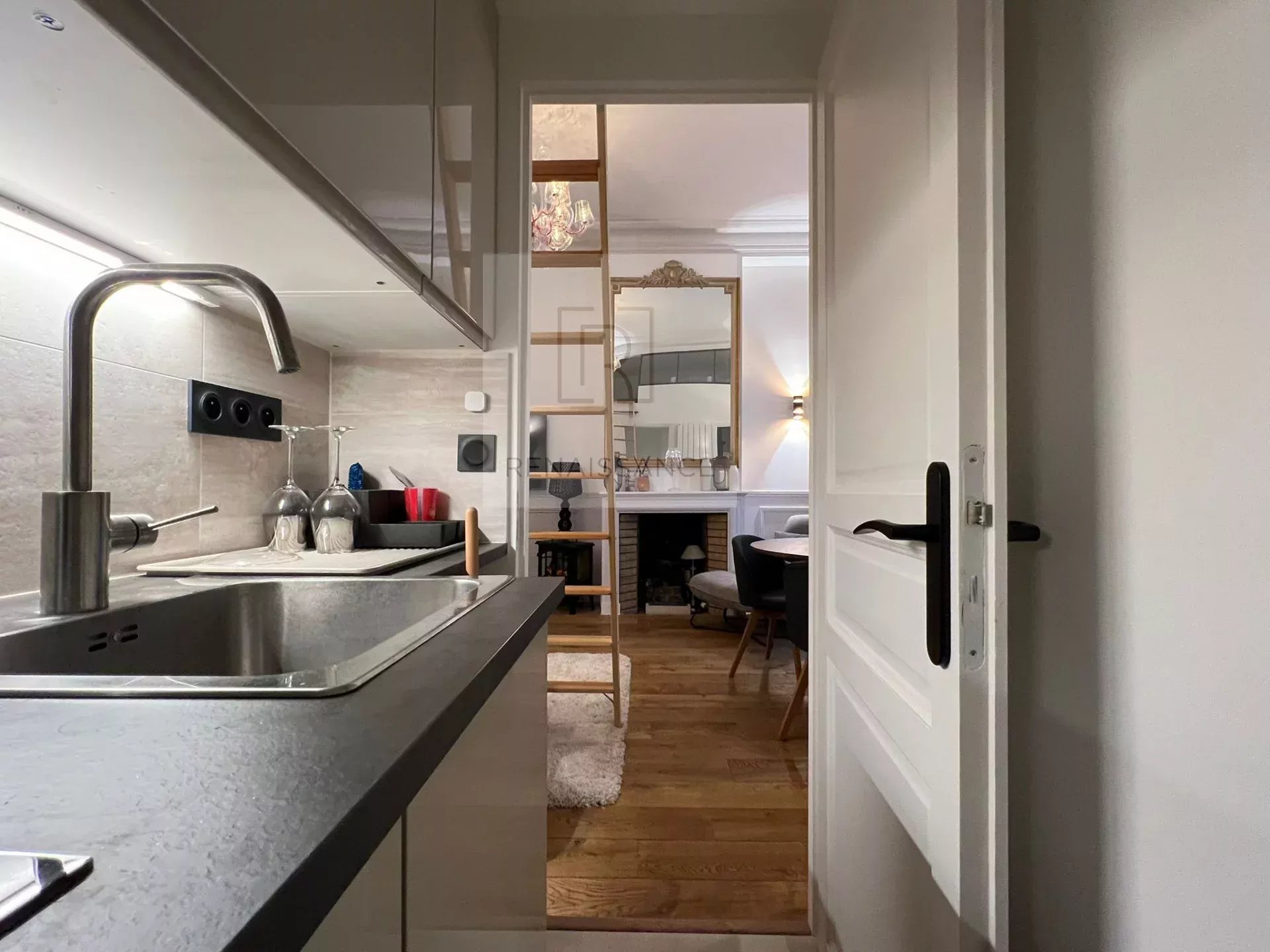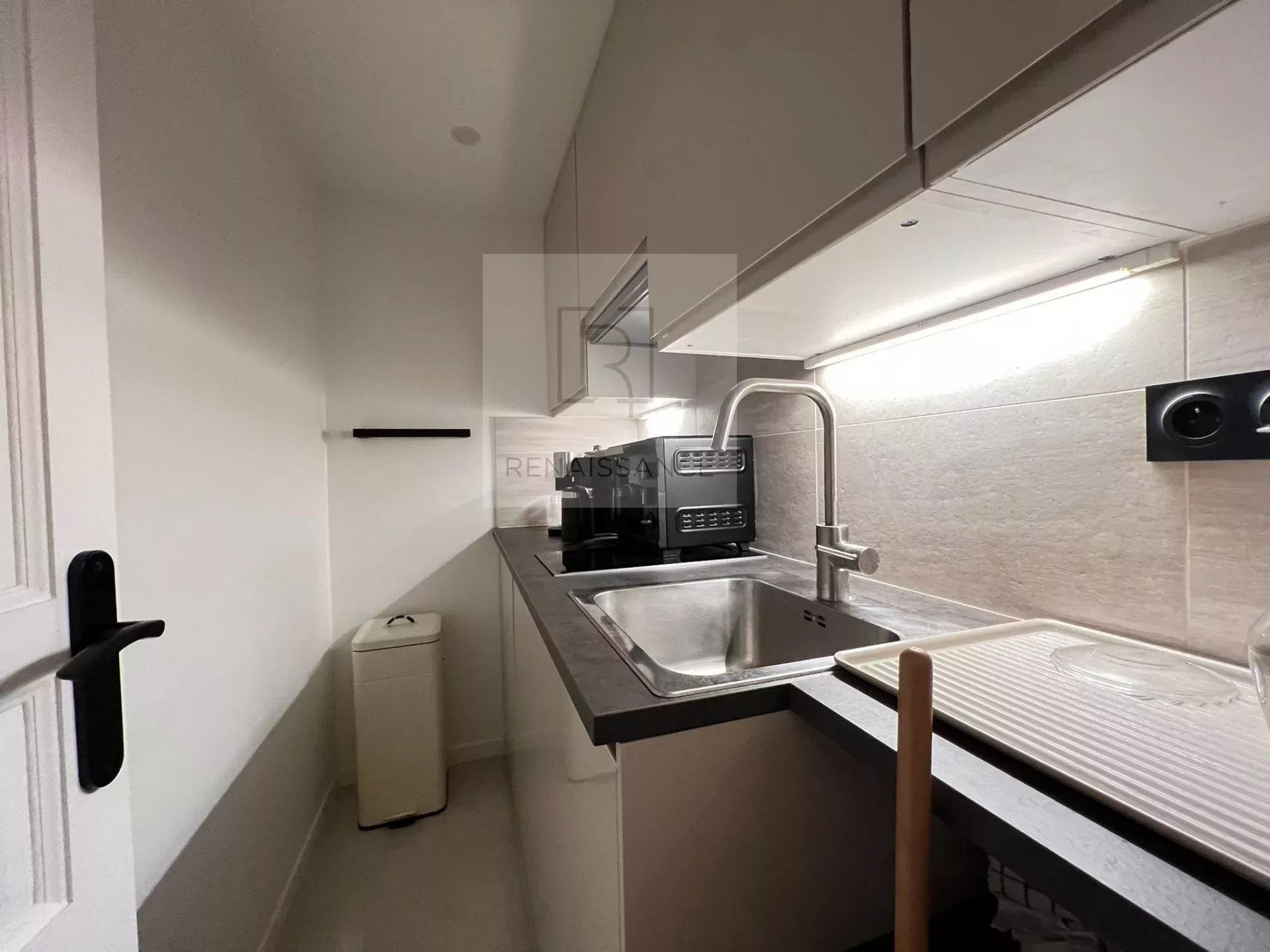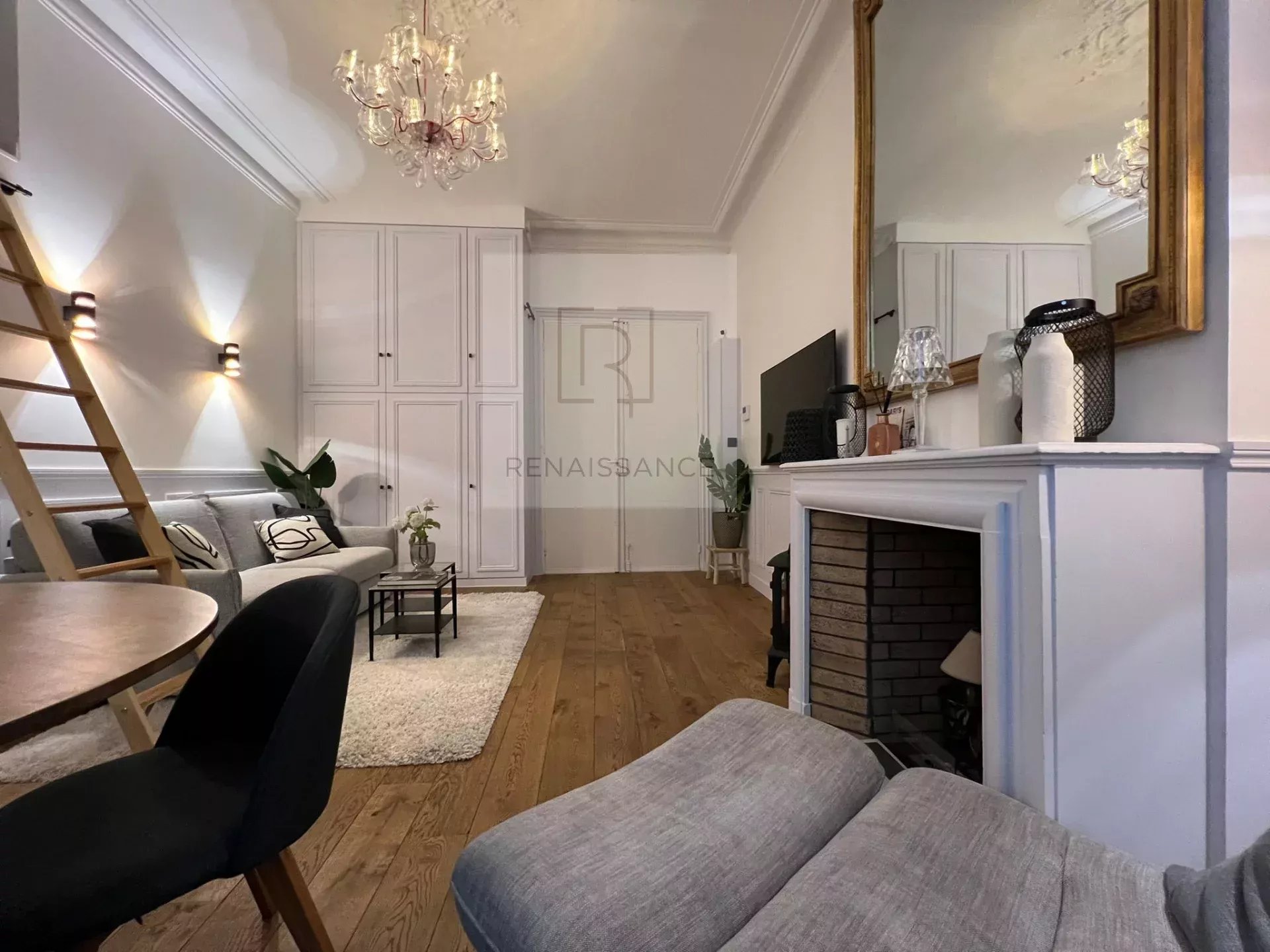 PARIS 75008 Triangle d'Or,Coup de Coeur pour ce studio d'une surface de 25.6 m² Loi Carrez ( 30.96 m2 au sol ) situé sur cour d'un immeuble Haussmanien avec gardien. Spacieux et lumineux.il présente un design contemporain avec un espace de vie optimisé. Il comprend : une pièce principale. avec rangements intégrés avec élégance. une cuisine aménagée et équipée. une salle d'eau avec WC et une mezzanine. Rare. appartement est une opportunité idéal pour un premier investissement ou un pied à terre dans ce quartier prestigieux.Possibilité profession libérale .Métro George V.